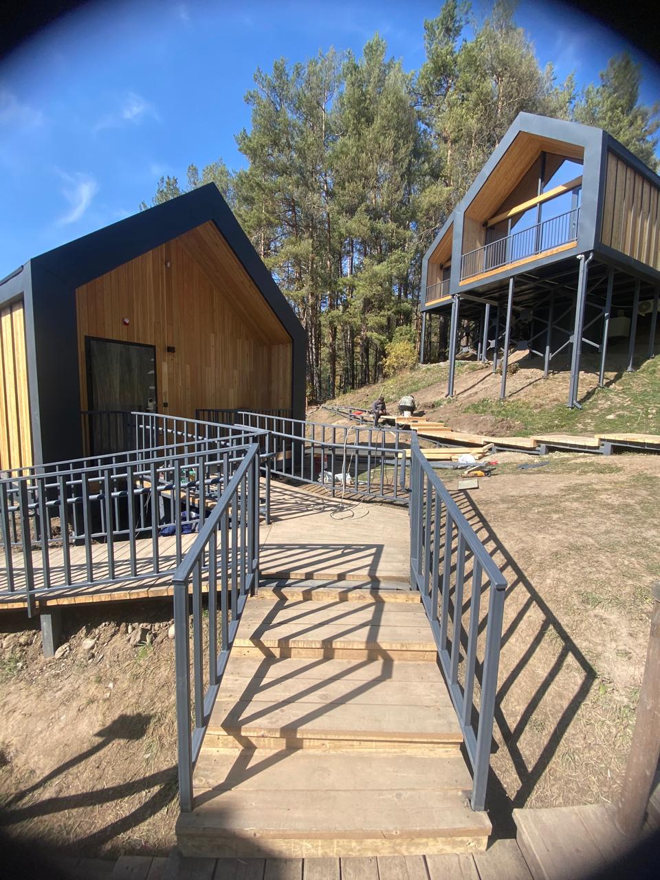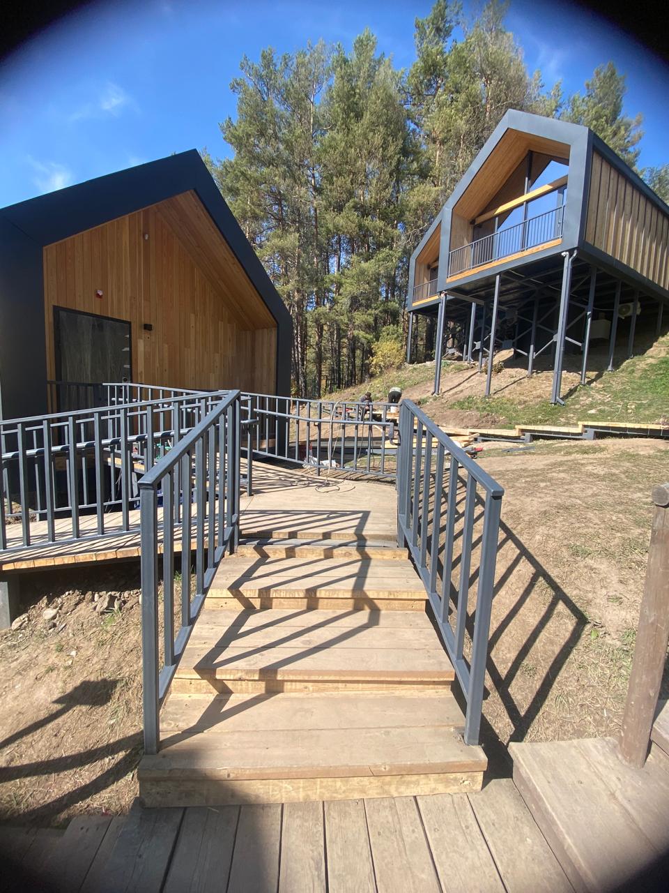 Недавно Prealux завершила строительство домиков на территории Qazaq Auyl. Сейчас бригада занимается возведением лестниц и устройством тропинок. Проект реализуется совместно с компанией ОРЛЕУ Stroi Group. В данный период построено 3 глэмпинга (современный вид отдыха на природе, сочетающий в себе комфорт гостиничного номера и возможность полного погружения в природную среду) – это 3 домика для проживания, каждый площадью – 40-42 кв.м. Виды работ: с нуля до конька кровли!